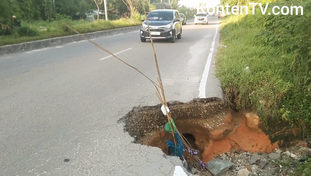“Agar tidak terjadi kecelakaan jadi diberi tanda saja.Memang pernah beberapa waktu yang lalu salah seorang pengendara hampir saja masuk kedalam lobang yang longsor ini,”sebutnya, Senin,8 Juli 2024.