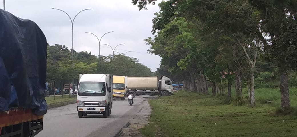 Dari pantauan skinusantara.com truk tangki minyak tersebut tampak menghalangi setiap pengendara jalan,namun demikian sepertinya supir atau kenek truk mengatur situasi jalan agar tidak terjadi macet.