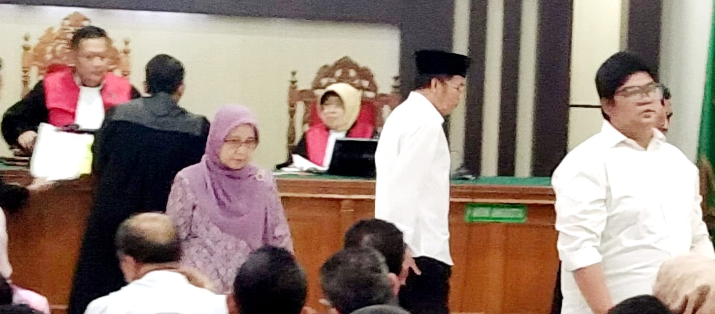 Tampak dalam persidangan salah seorang saksi merupakan eks Kepala Dinas Kesehatan Provinsi Riau Mimi Yuliani Nazir.