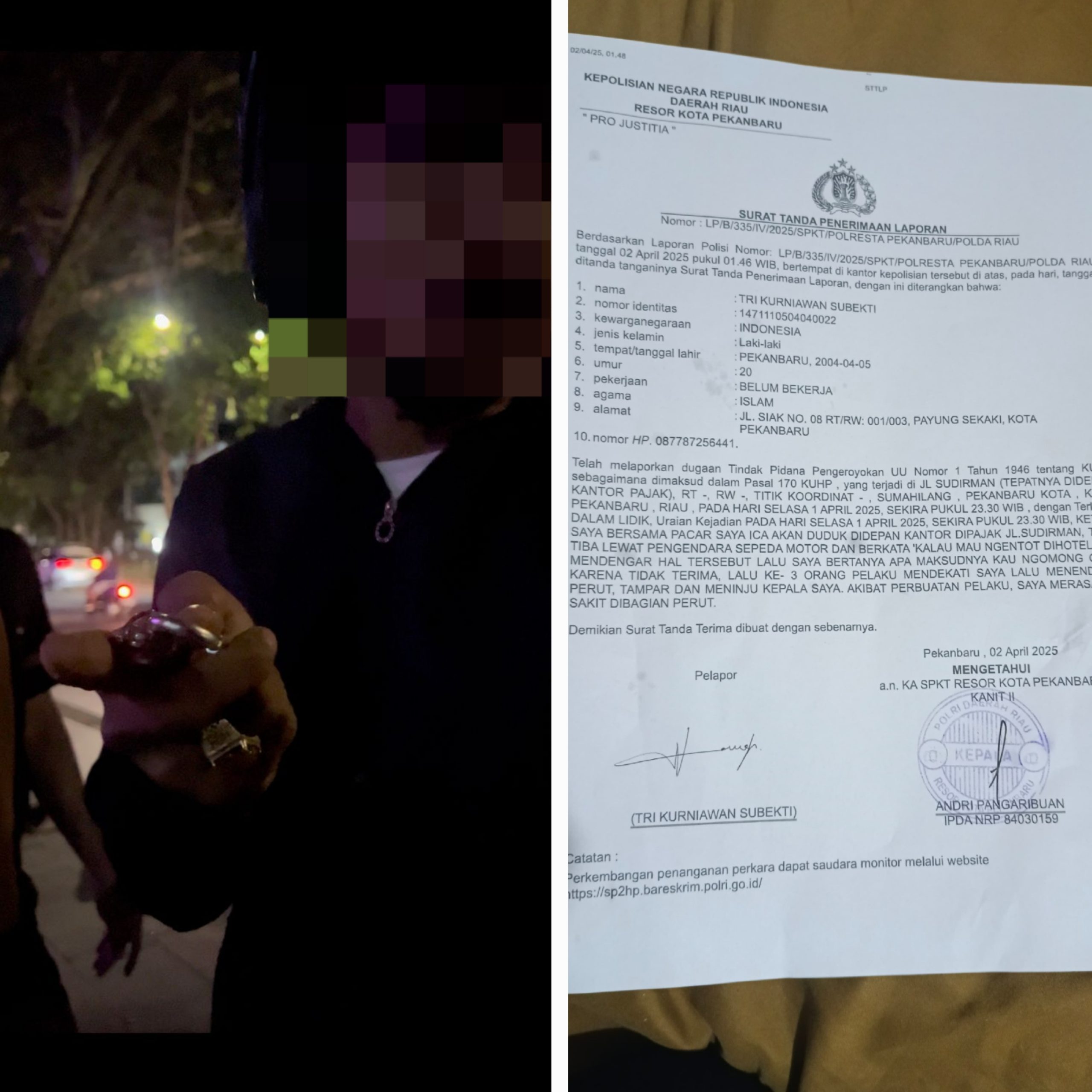 Pekanbaru,KontenTV.com – Sebuah insiden kekerasan terjadi di Jalan Sudirman, Pekanbaru, pada hari Selasa (1/4/2025). Seorang pria berinisial TK menjadi korban kekerasan oleh sekelompok orang yang tidak dikenal.